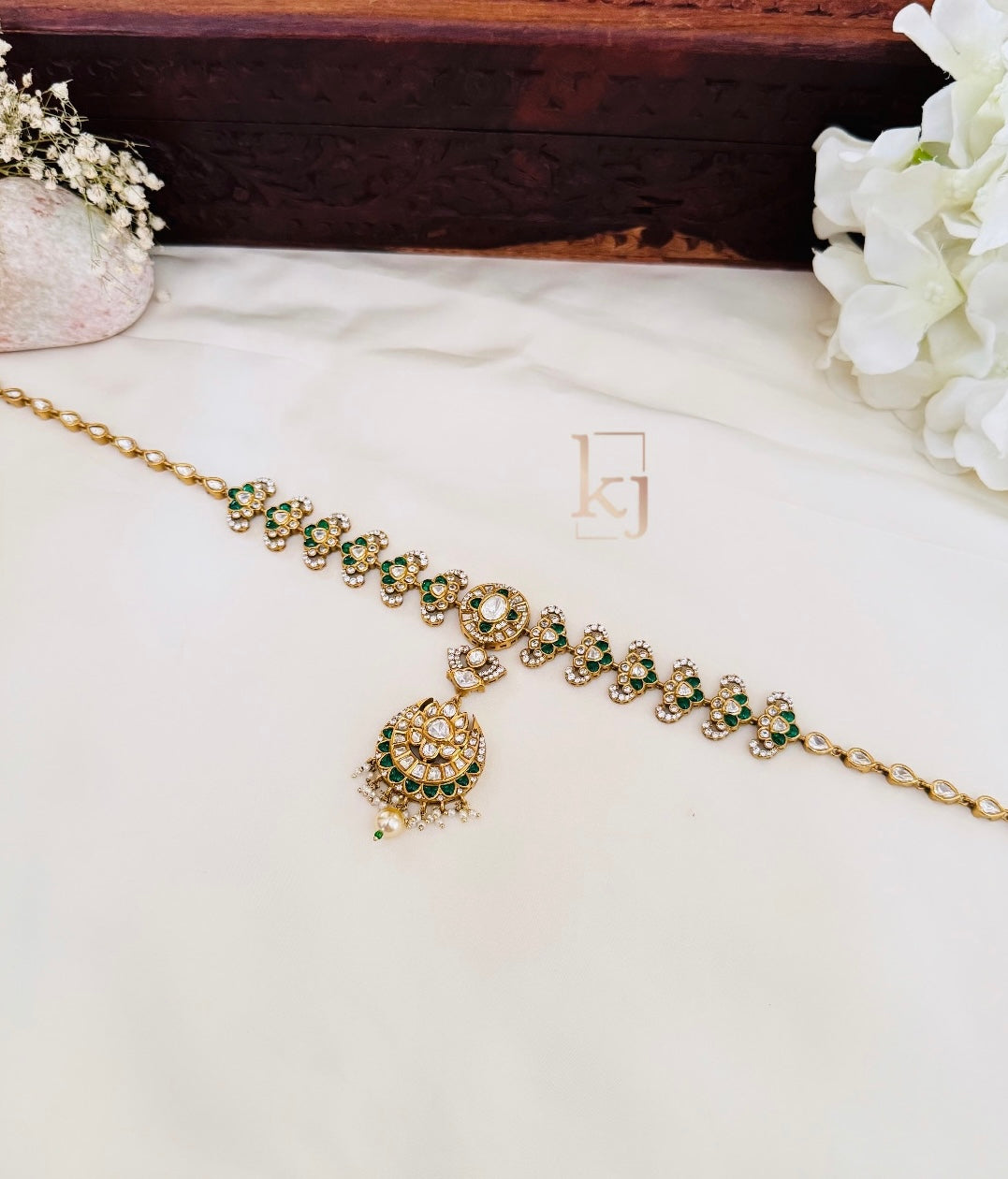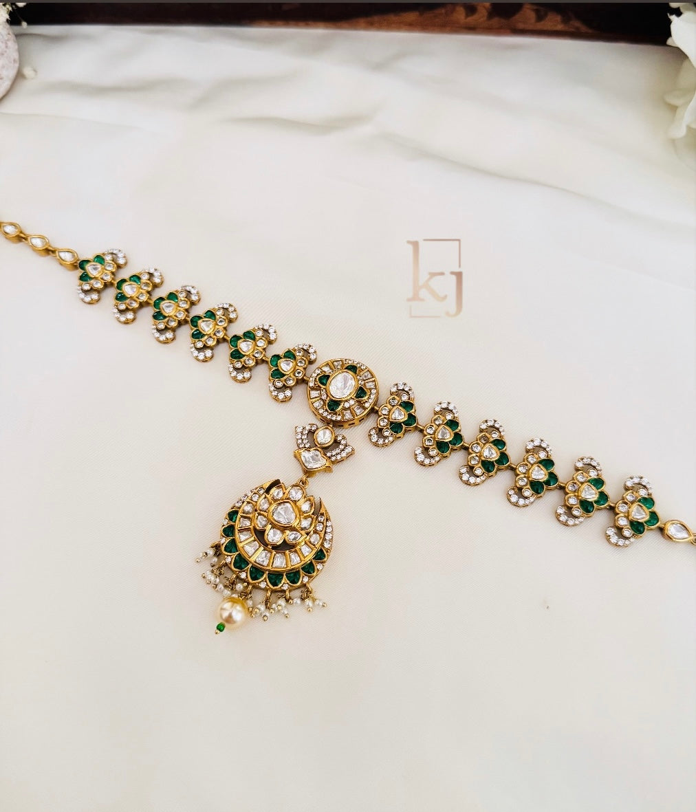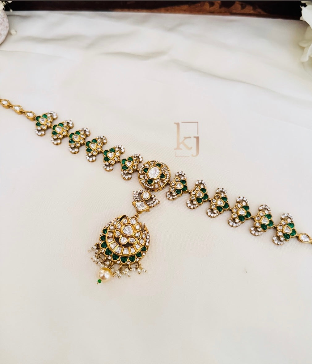 This maeleth Is Handcrafted In Brass Alloy With Imitation Zircon & Gold Polki Work Of Very Fine Quality . This Matha Patti Is Coated With 18 Kt Gold Polish Which Give It A Real Look . An Absolutely Stunning Piece To Own And Is Very Light In Weight.**All Jewelry Is Completely Inspected For Every Crystal And Bead Before We Send It Out,Each Piece Is Carefully Packaged To Reach You Safely. And Comes In A Box.*