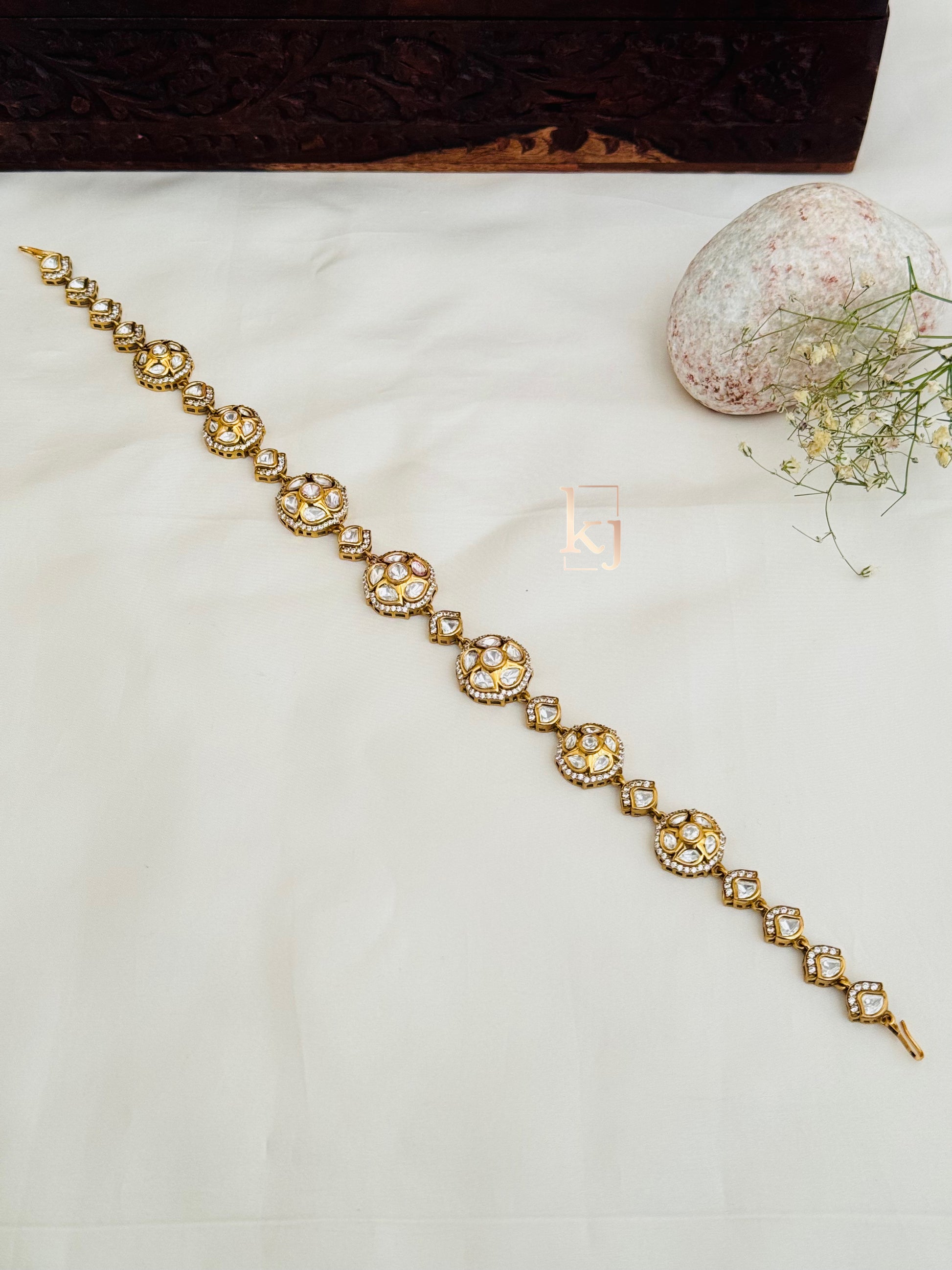 This Ramya Is Handcrafted In Brass Alloy With Imitation Zircon & Gold Polki Work Of Very Fine Quality . This Matha Patti Is Coated With 18 Kt Gold Polish Which Give It A Real Look . An Absolutely Stunning Piece To Own And Is Very Light In Weight.**All Jewelry Is Completely Inspected For Every Crystal And Bead Before We Send It Out,Each Piece Is Carefully Packaged To Reach You Safely. And Comes In A Box.*