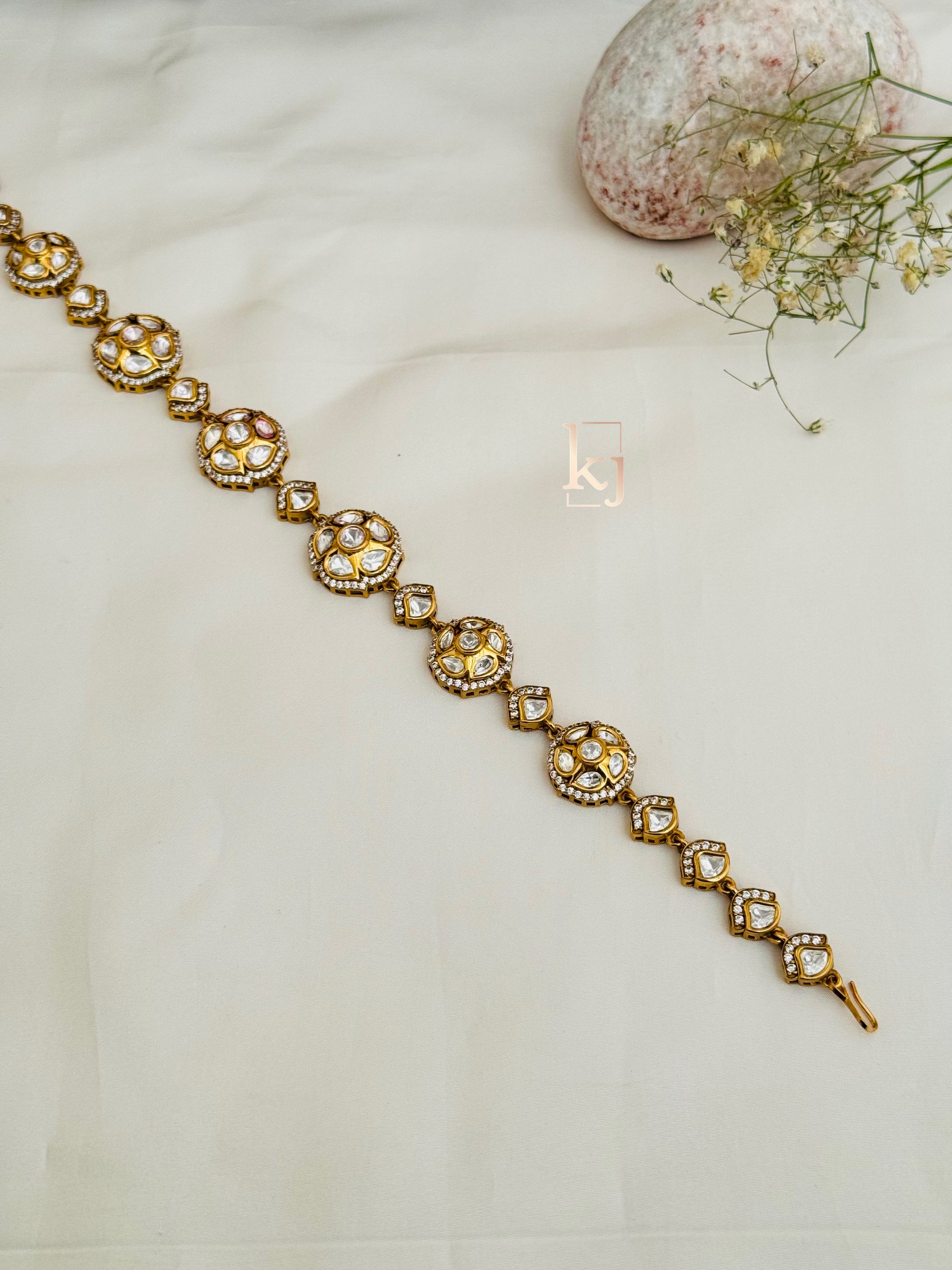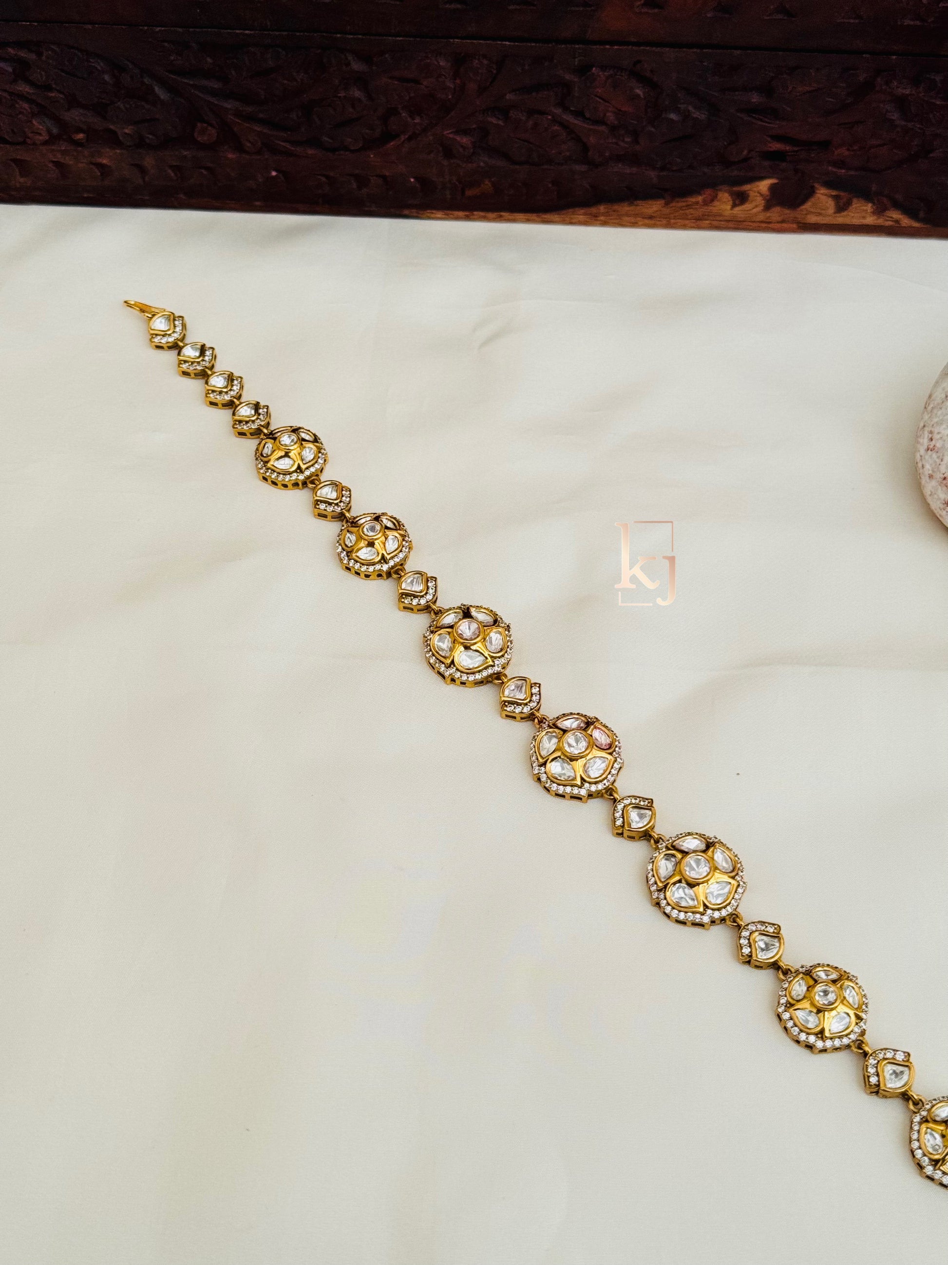 This Ramya Is Handcrafted In Brass Alloy With Imitation Zircon & Gold Polki Work Of Very Fine Quality . This Matha Patti Is Coated With 18 Kt Gold Polish Which Give It A Real Look . An Absolutely Stunning Piece To Own And Is Very Light In Weight.**All Jewelry Is Completely Inspected For Every Crystal And Bead Before We Send It Out,Each Piece Is Carefully Packaged To Reach You Safely. And Comes In A Box.*