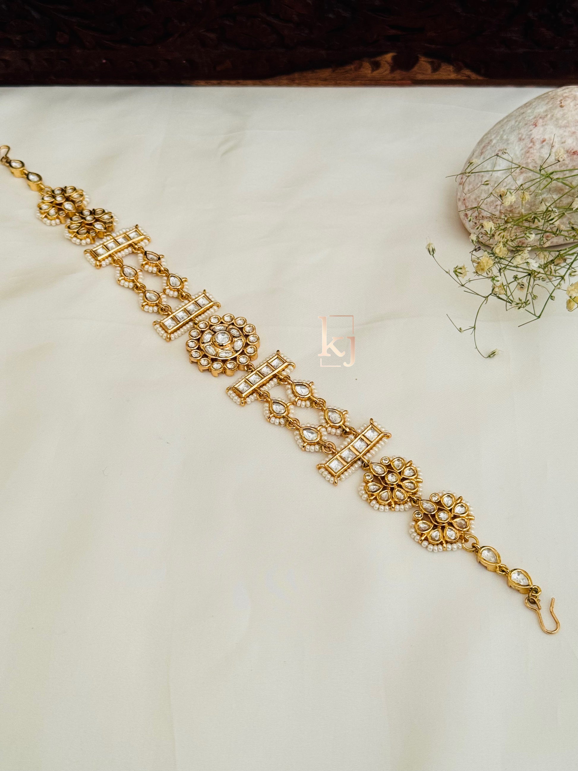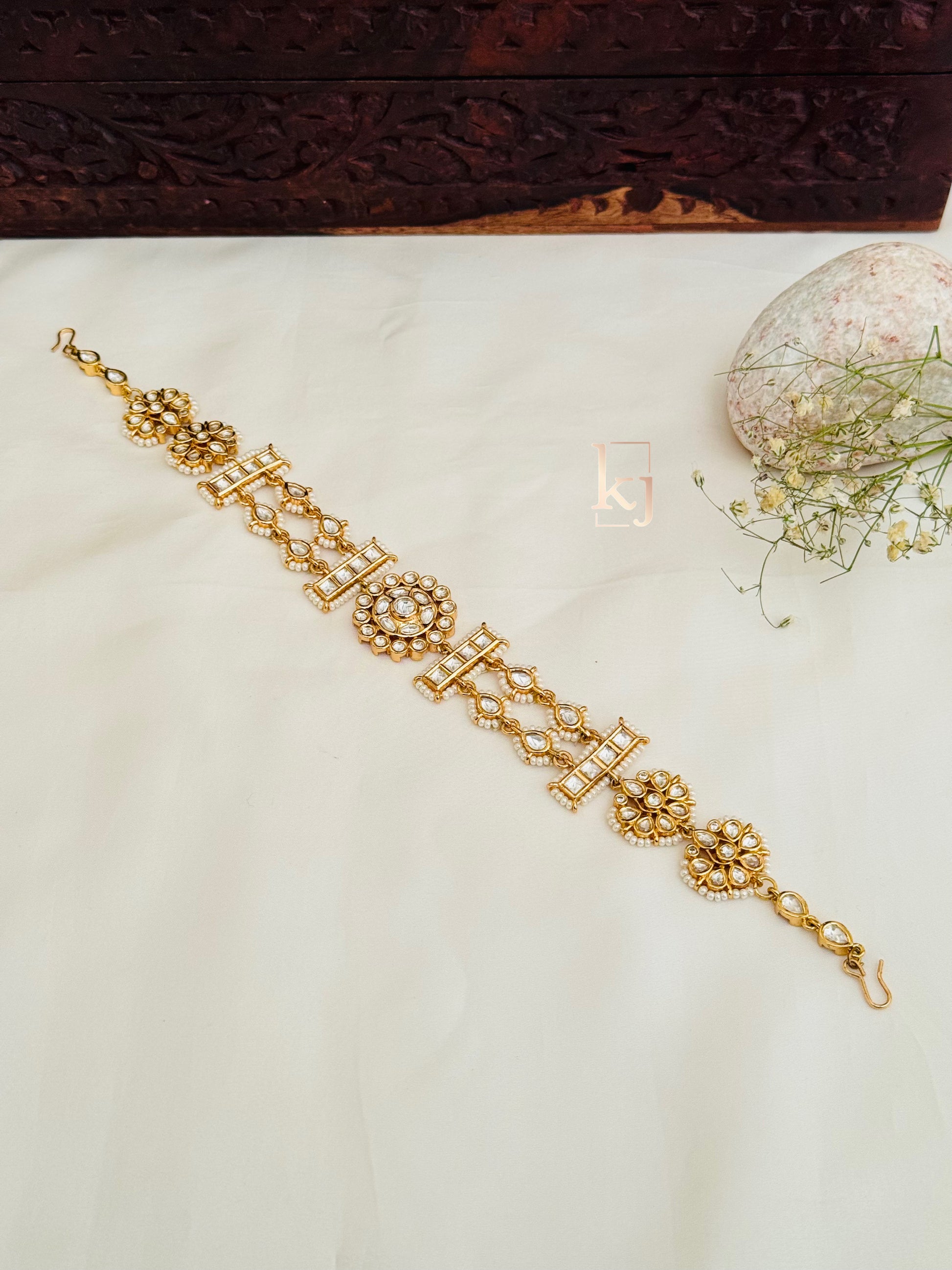 This Aksha Is Handcrafted In Brass Alloy With Imitation Zircon & Gold Polki Work Of Very Fine Quality . This Matha Patti Is Coated With 18 Kt Gold Polish Which Give It A Real Look . An Absolutely Stunning Piece To Own And Is Very Light In Weight.**All Jewelry Is Completely Inspected For Every Crystal And Bead Before We Send It Out,Each Piece Is Carefully Packaged To Reach You Safely. And Comes In A Box.*