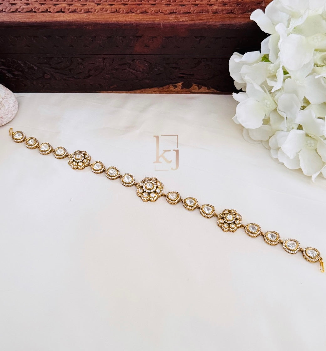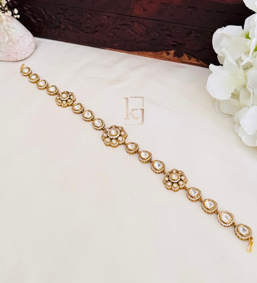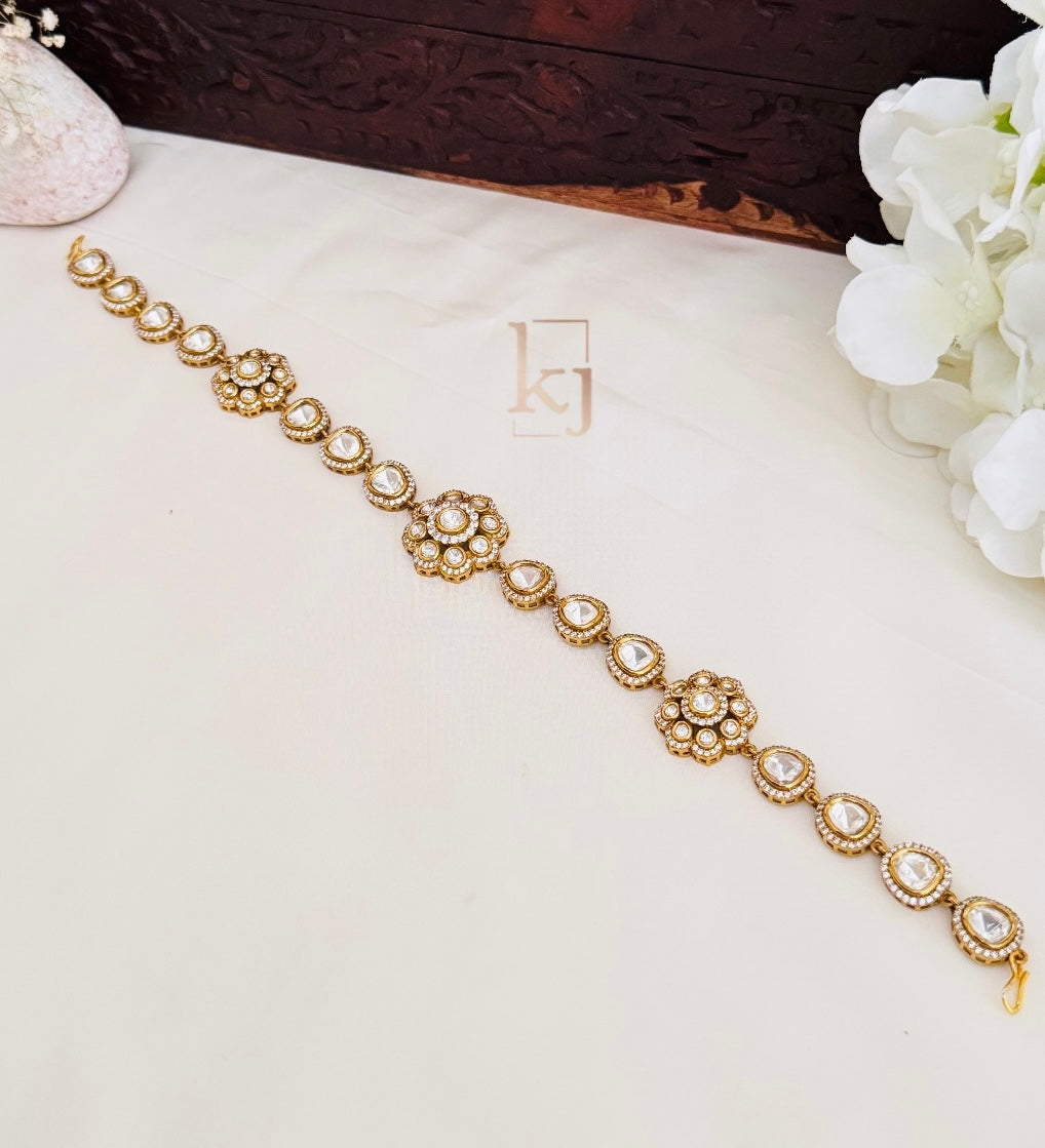 This tara Is Handcrafted In Brass Alloy With Imitation Zircon & Gold Polki Work Of Very Fine Quality . This Matha Patti Is Coated With 18 Kt Gold Polish Which Give It A Real Look . An Absolutely Stunning Piece To Own And Is Very Light In Weight.**All Jewelry Is Completely Inspected For Every Crystal And Bead Before We Send It Out,Each Piece Is Carefully Packaged To Reach You Safely. And Comes In A Box.*