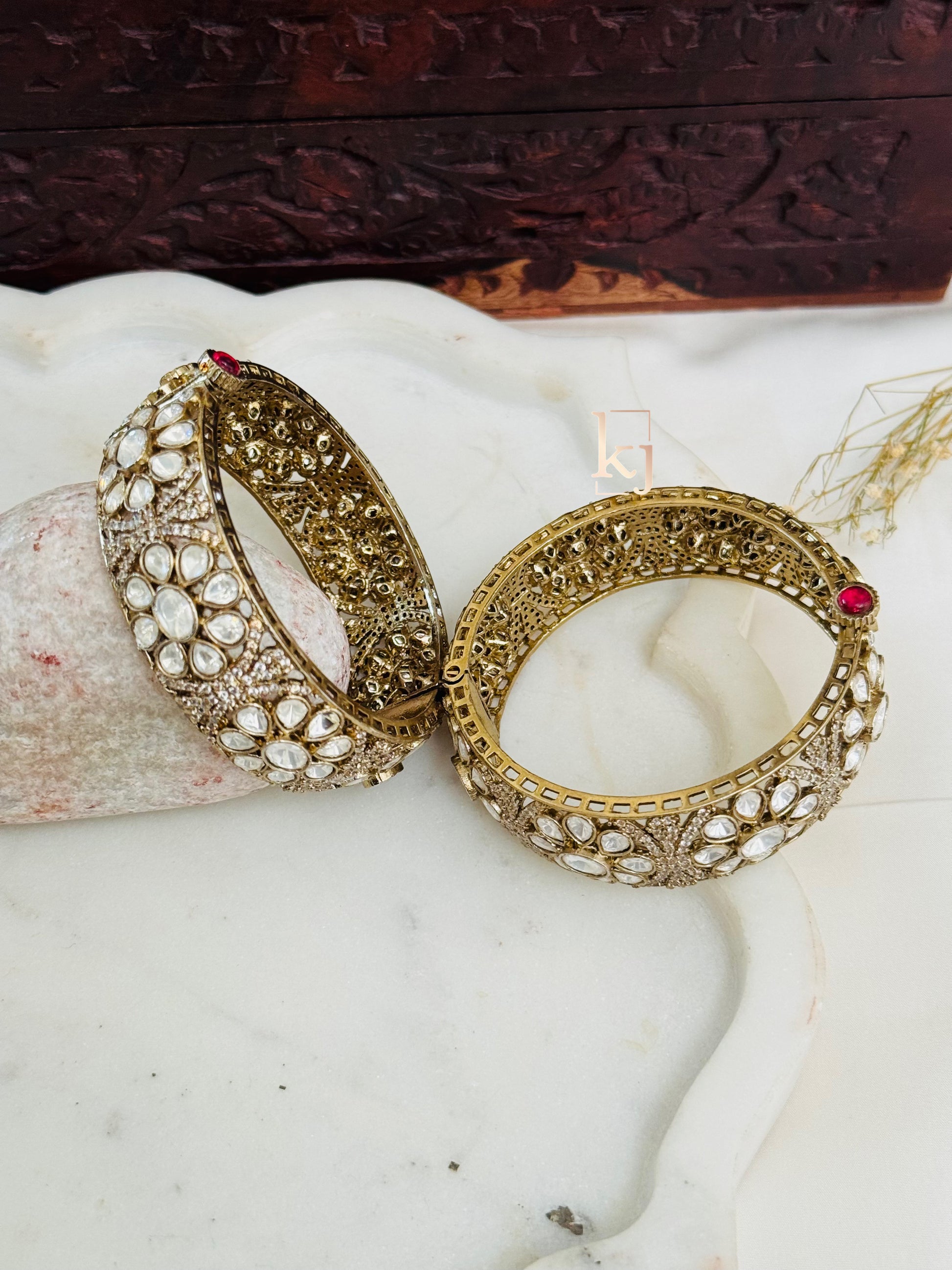 Presenting the nihaari Bangles, which combine heritage and elegance. These gorgeous pieces, which are perfect for both ladies and girls, provide timeless appeal to any ensemble. Find the ideal pair online; they are designed for people who value refinement in every little aspect.