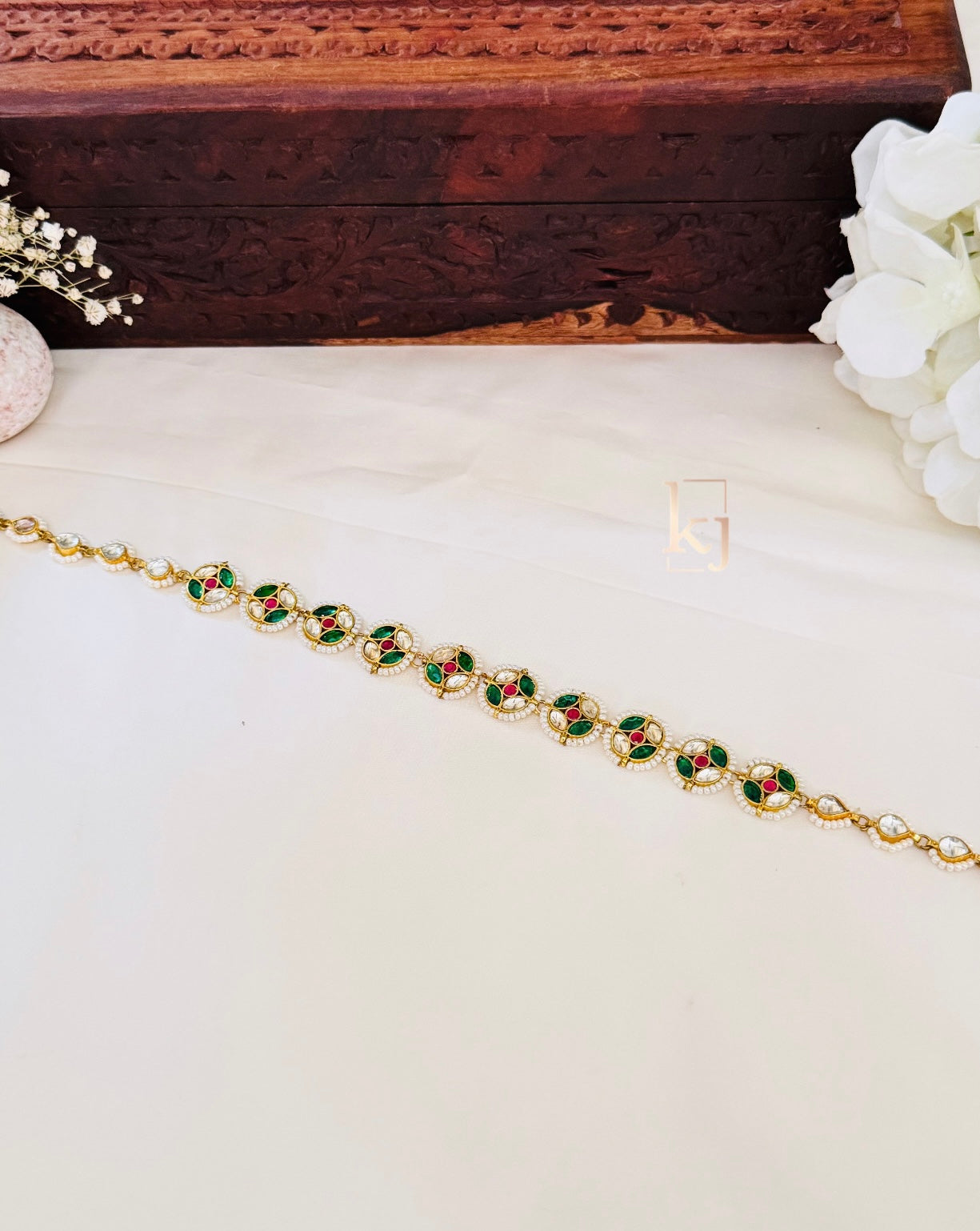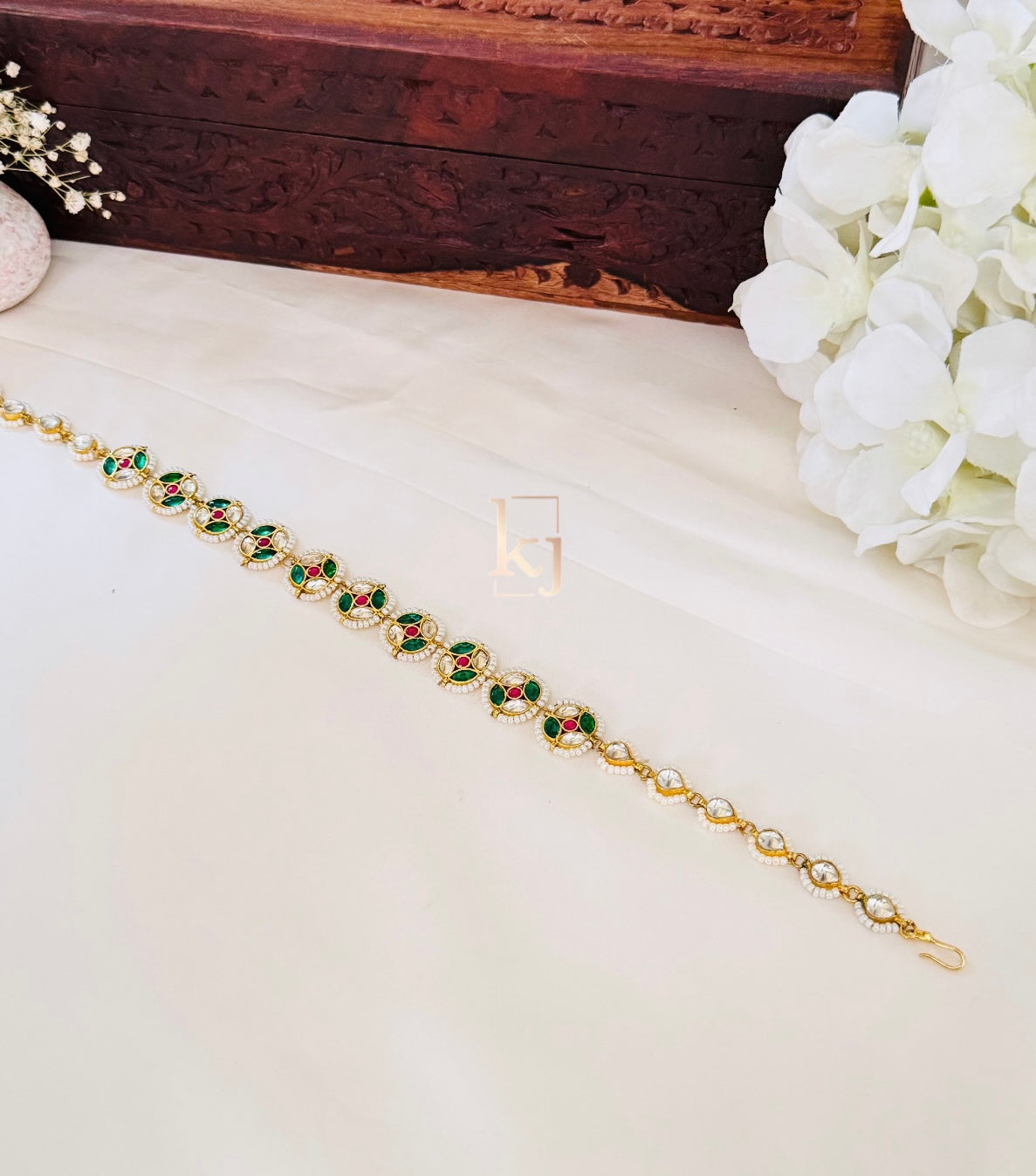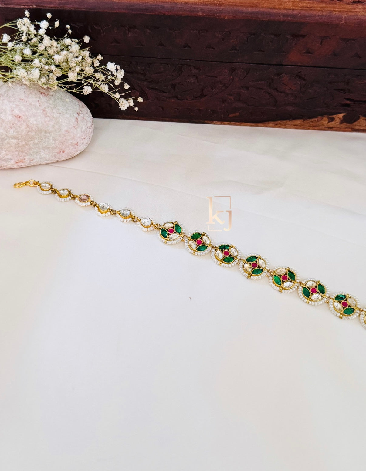 This emblyn Is Handcrafted In Brass Alloy With Imitation Zircon & Gold Polki Work Of Very Fine Quality . This Matha Patti Is Coated With 18 Kt Gold Polish Which Give It A Real Look . An Absolutely Stunning Piece To Own And Is Very Light In Weight.**All Jewelry Is Completely Inspected For Every Crystal And Bead Before We Send It Out,Each Piece Is Carefully Packaged To Reach You Safely. And Comes In A Box.*
